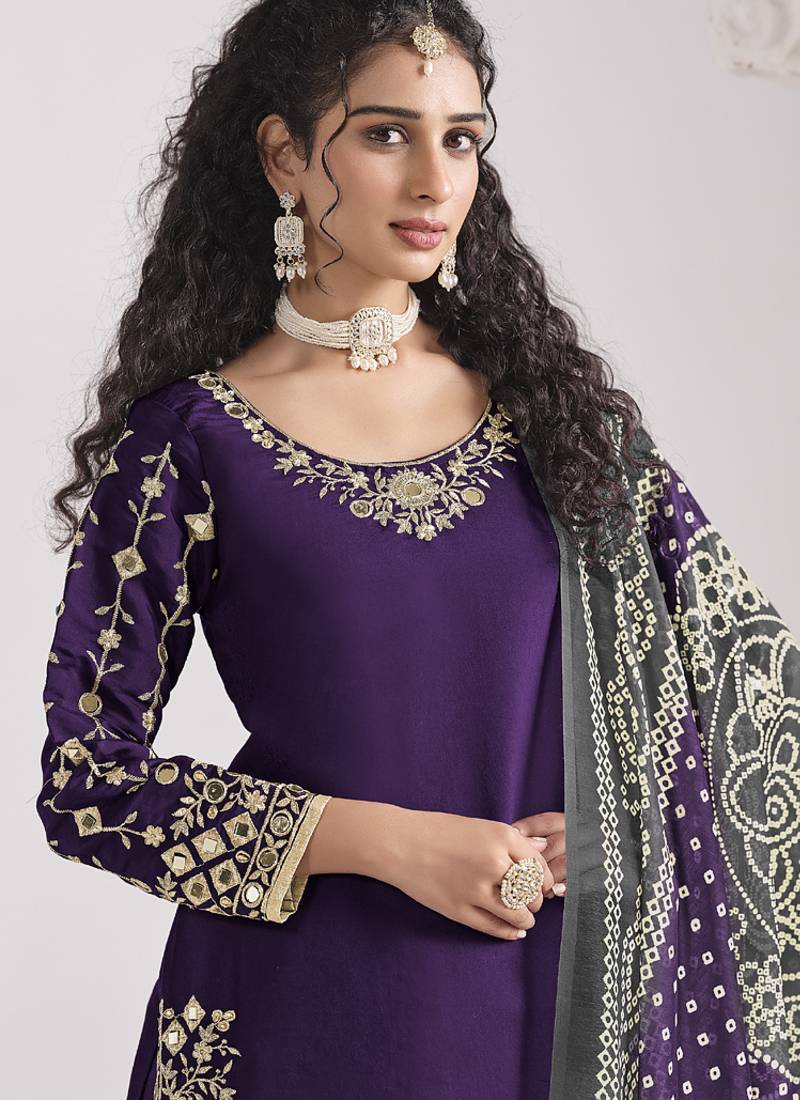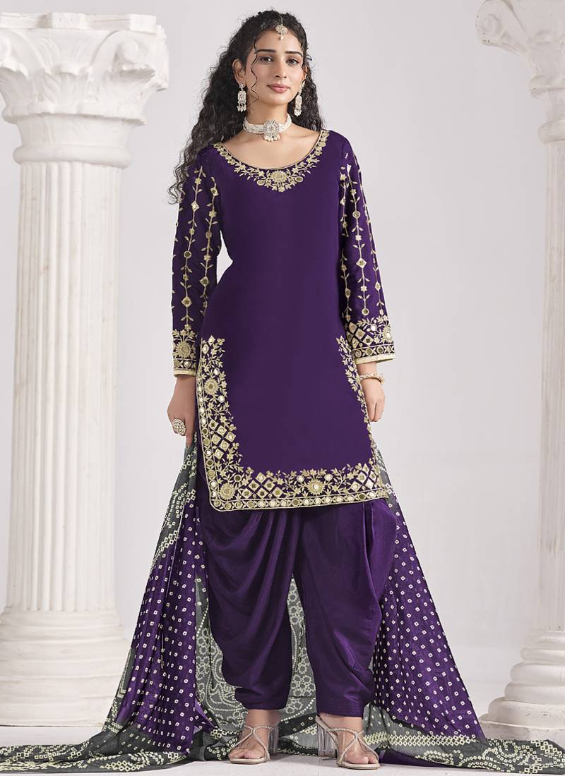 | Product Name | Violet Roman Silk Mirror Work Patiala Suit | |