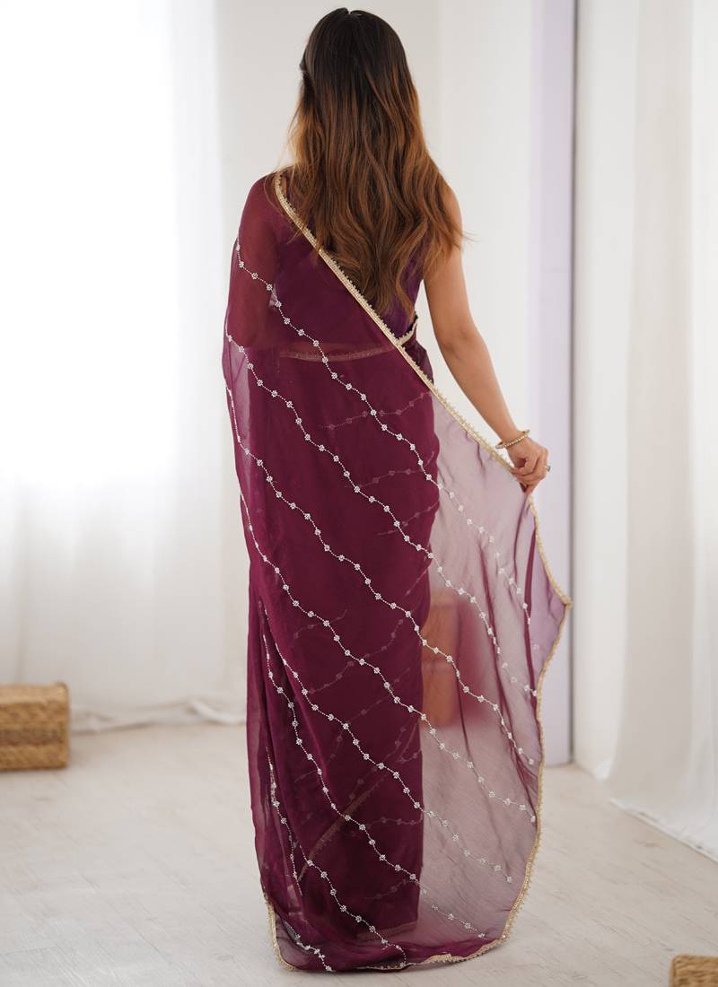 | Product Name | Wine Smooth Sitara Fabric Moti & Val Sequence Designer Saree | |