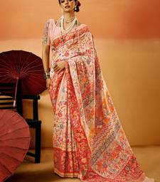 Peach pashmina cotton silk saree with diaphanous saree with blouse for women