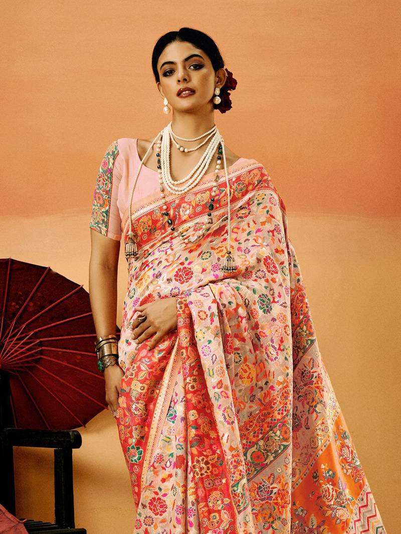 | Product Name | Peach Pashmina Cotton Silk Saree With Diaphanous Saree With Blouse For Women | |