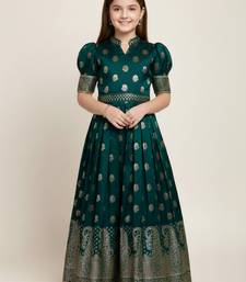 | Product Name | Green Jacquard Silk Fabric Ready Made Gown Dress For Kids Girls | |