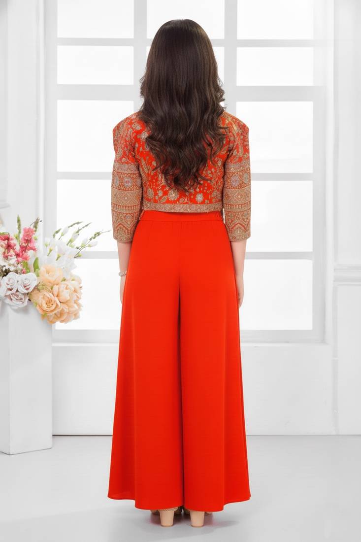 | Product Name | Orange Sequence Work With Floral Print Jacket Style Indo Western Palazzo Set | |