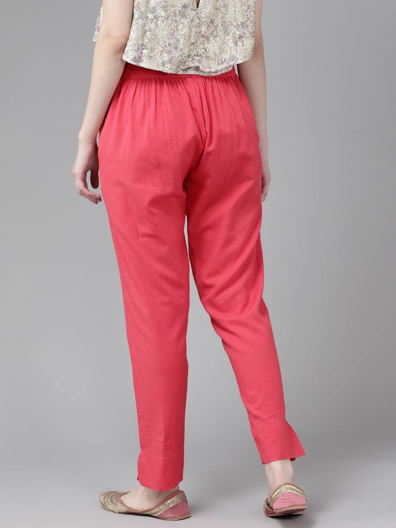 | Product Description | Peach Woven Trousers Slim Fit Mid Rise Length: Regular Pattern: Solid Flat Front, With No Pleats Design Feature: Plain 2 Pockets Size & Fit Fit: Slim Fit Material & Care 100% Cotton Hand Wash |