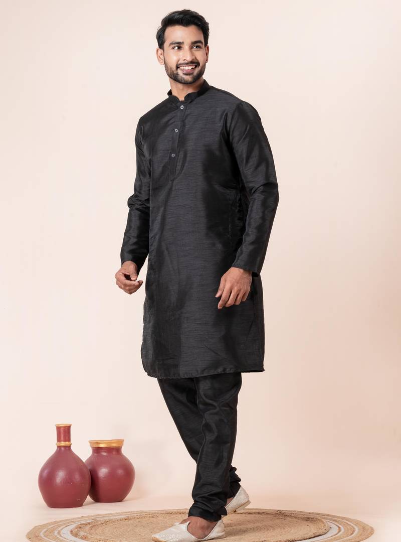 | Product Name | Black Plain Dupion Silk Kurta For Festive, Reception, Weddings | |