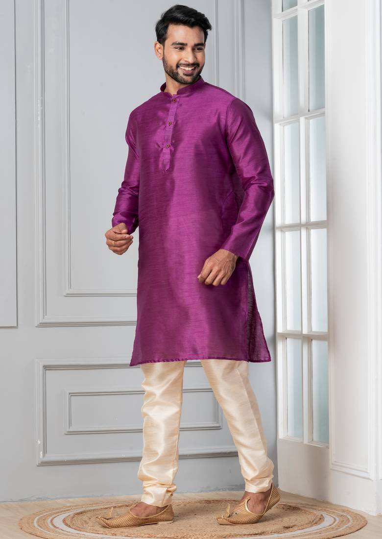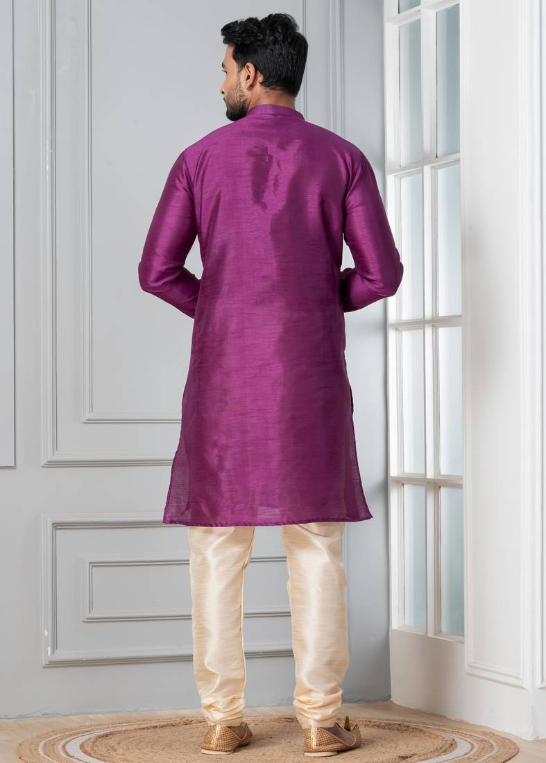 | Product Description | Step Into Timeless Elegance With This Men Purple Plain Dupion Silk Kurta Churidar Set For Festive, Reception, Weddings, Designed To Bring Out Your Refined Traditional Charm. Crafted From A Premium Dupion Silk Fabric, This Set Ensures All Day Comfort While Maintaining A Crisp, Structured Look. |