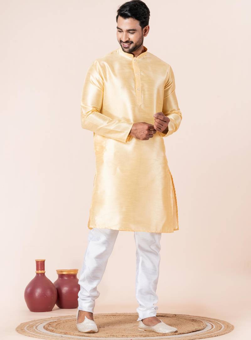 | Product Description | Step Into Timeless Elegance With This Men Yellow Plain Dupion Silk Kurta Churidar Set For Festive, Reception, Weddings, Designed To Bring Out Your Refined Traditional Charm. Crafted From A Premium Dupion Silk Fabric, This Set Ensures All Day Comfort While Maintaining A Crisp, Structured Look. |