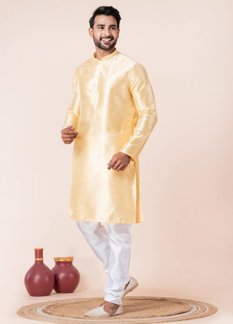 | Product Description | Step Into Timeless Elegance With This Men Yellow Plain Dupion Silk Kurta For Festive, Reception, Weddings, Designed To Bring Out Your Refined Traditional Charm. Crafted From A Premium Dupion Silk Fabric, This Set Ensures All Day Comfort While Maintaining A Crisp, Structured Look. |